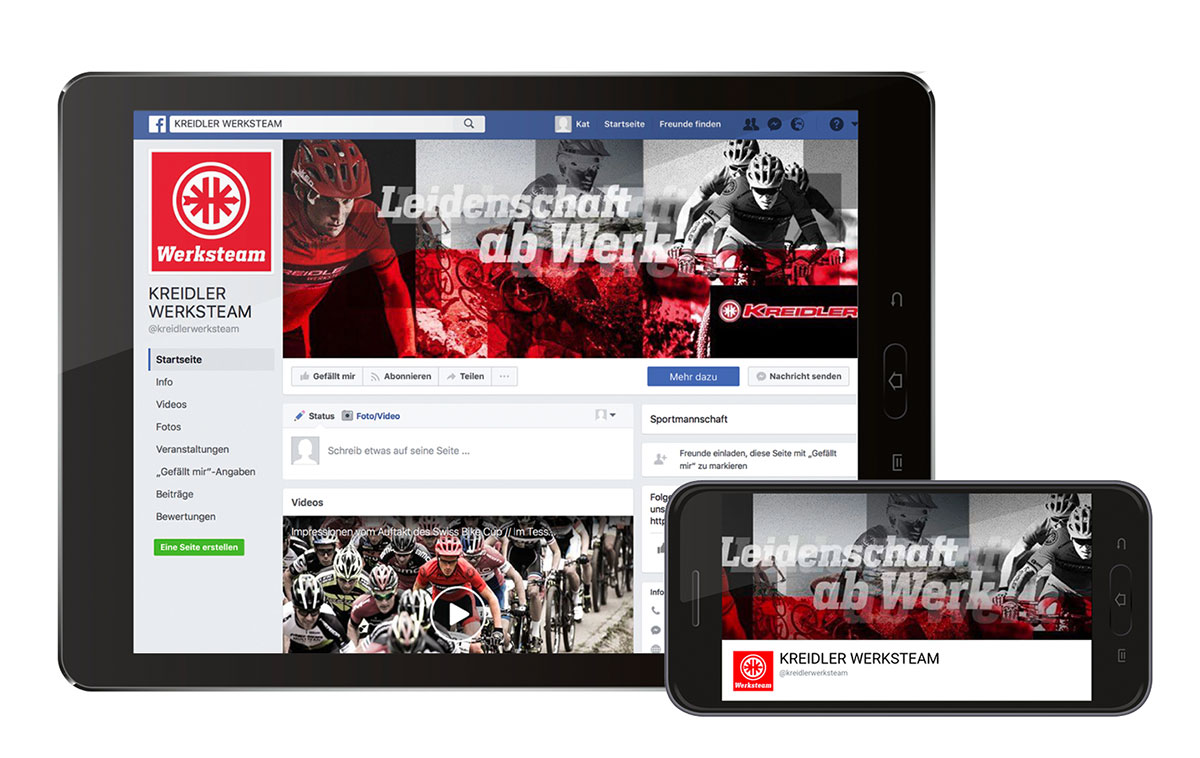 Set-up of the Facebook team and rider pages.